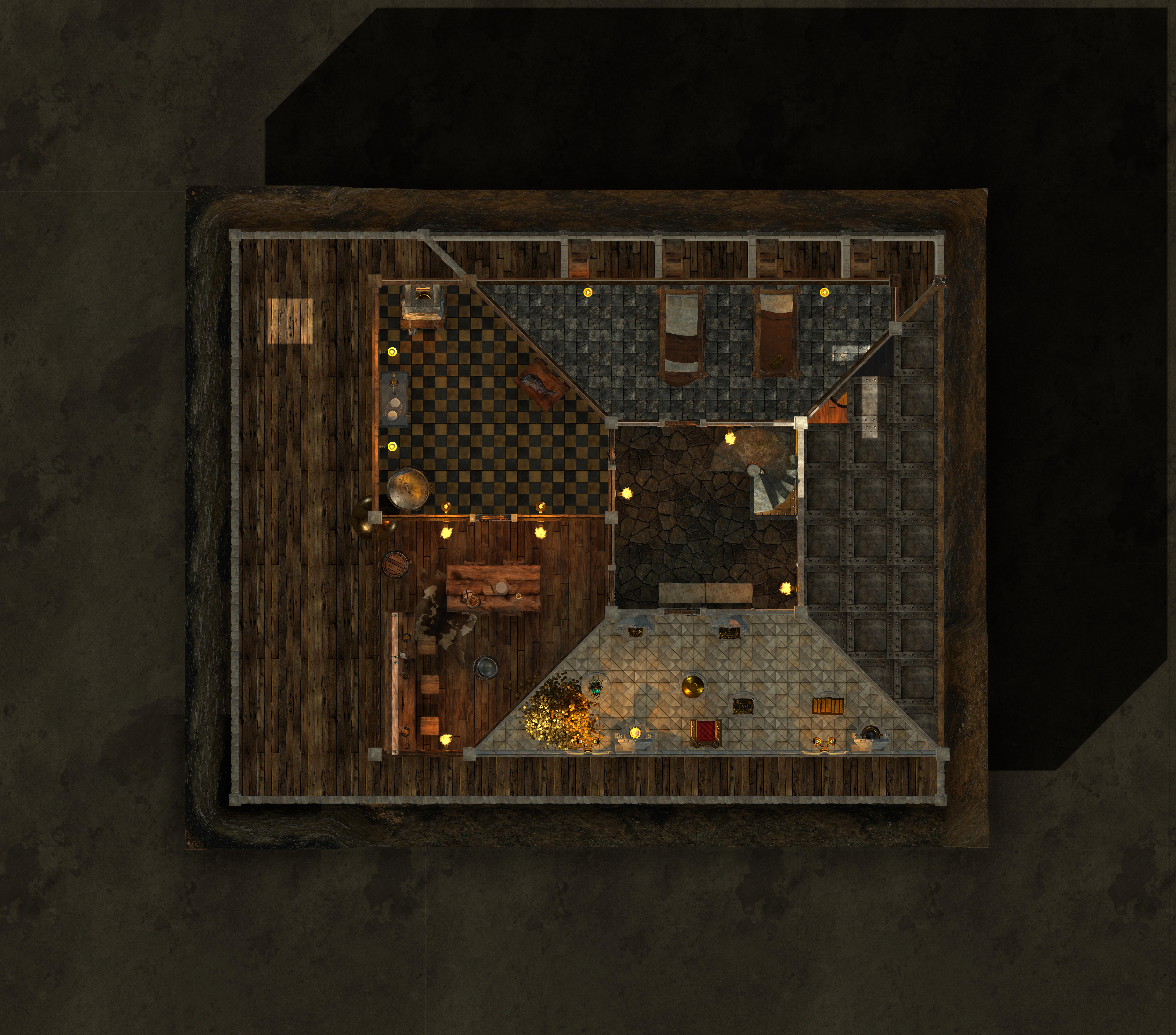Due to software limitations…can’t drawn it all in, but the outside is all dirt. That is everything on the outside that looks like a wood floor and the right triangle.